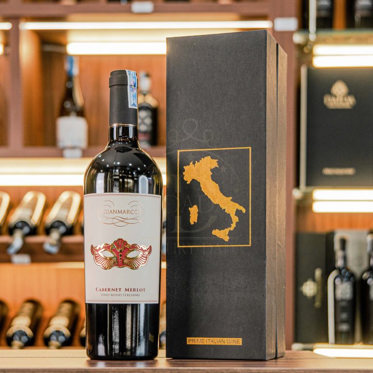 Rượu vang mặt nạ đỏ Ý Gianmarco Cabernet Merlot, Rượu Vang đỏ chát 14,5 độ, Xuất xứ Italia. Anh em sinh đôi với Gianmarco Elisir. Được làm hoàn toàn từ giống nho vỏ đen Merlot nên sở hữu một màu đỏ tím quyến rũ và thu hút ánh nhìn. Rượu là tập hợp của những nốt hương khác nhau từ trái cây chín đỏ như quả anh đào, quả mận khô.