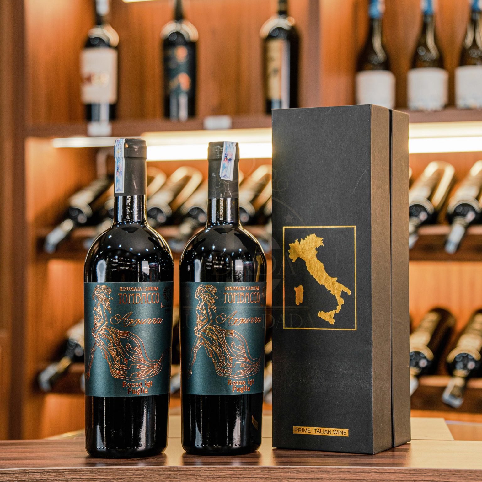 Rượu vang đỏ cô gái Ý TOMBACCO AZZURRA 1919 hạng IGT vùng Puglia nước Ý. Rượu vang đỏ Azzurra Rosso IGT Puglia của nhà Rinomata Cantina Tombacco được lấy tên từ người con gái Azzurra. Chai rượu vang đỏ này là chai rượu vang hiếm hoi đạt được nhiều giải thưởng có uy tín và danh giá trên toàn thế giới: Giải vàng 2019 Concours Mundus Vini Meininger, Giải vàng 2019 Berliner Wein Cup, 2019 Sommelier Wine Aeards, đạt 98 điểm tại cuộc thi Luca Maroni 2019, Giải Bạc Thử thách Rượu vang Quốc tế 2019, Giải Đồng Cuộc thi Rượu quốc tế 2019.