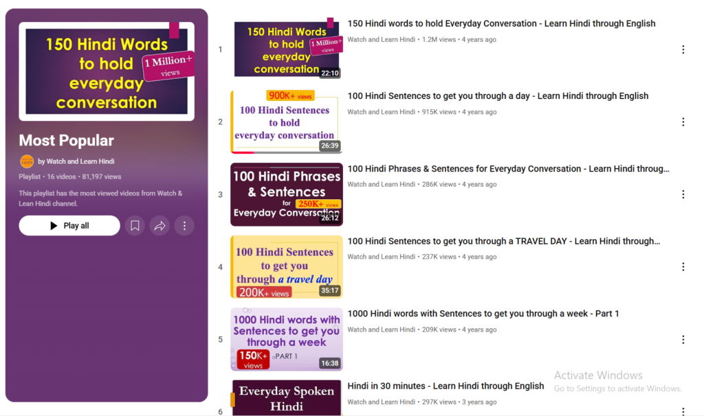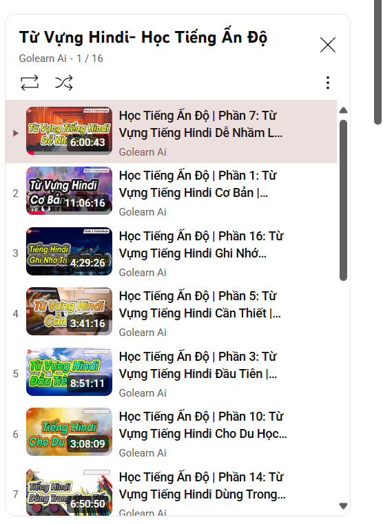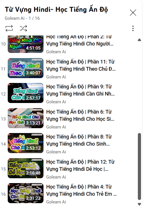 16. TỔNG HỢP LIST CÁC VIDEO HỌC TIẾNG ẤN ĐỘ HINDI